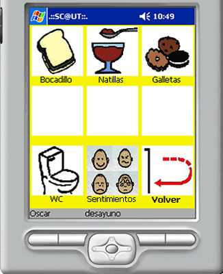 Un comunicador do tamaño dun móbil soportado sobre un dispositivo PDA proporciona aos nenos con trastorno do espectro autista carentes de linguaxe funcional a 'navegación' sobre actividades cotiás, como comer, ir ao supermercado ou ao colexio.