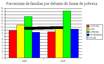 A situación económica dos fogares empeorou entre o ano 2005 e o 2006, segundo os datos do Instituto Galego de Estatística. A enquisa de condicións de vida das familias, estruturada en provincias, amosa, ademais, un claro contraste entre a Galiza atlántica, máis rica, e a Galiza interior, con menores ingresos e a poboación máis avellentada.