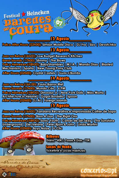 Este ano, sen dúbida, son nomes como Sonic Youth, Dinosaur Junior, os BabyShambles, “que escolleron Paredes como o seu único bolo fóra de Inglaterra este ano”, os grandes atractivos do cartel. Tamén os brasileiros Cansei de ser sexy, Architecture in Helsinki, Gogol Bordello, M.I.A., Sunshine Underground, ou Peter Bjorn and John pasarán polo escenario Heineken.