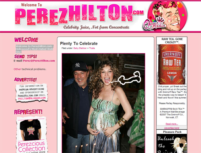 Na súa bitácora dálle aos internautas a benvida a "PerezHilton.com, o máis odiado sitio web en Hollywood". Asegura que ultimamente o seu blog pasou xa dos oito millóns de visitas diarias e medicións como a de Media Metrix colócana entre os blogs de maior crecemento nos Estados Unidos. A súa popularidade e a da súa páxina medra ao ritmo que axita ruxerruxes e se fai eco de anécdotas escoitadas en mentideiros e tapadillos varios. Afirma que a bitácora se alimenta ademais das achegas de ducias de amigos e confidentes, ás que el suma o seu particular punto de vista e a maioría das veces, un pequecho garabato sobre as fotografías tiradas doutros medios. O proceder xa lle supuxo varias rifas nos tribunais baixo acusacións de violación de dereitos de autor ou difamación, pero nesta altura, xa conta cun avogado ocupado de resolverlle esas leas. No artigo que a wikipedia lle adica a PerezHilton cóntase mesmo da referencia que a cantante Fergie, criticada polo blogueiro, incluíu sobre el nun dos seus temas. Desde este mesmo martes conta tamén coa súa entrada na Galipedia.