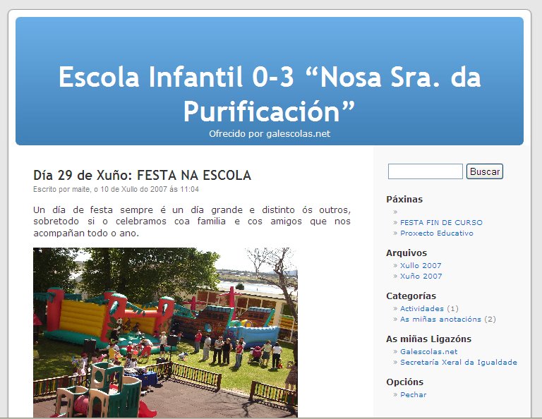 Ademais dos blogs dos centros, tamén están abertos ao público blogs persoais das familias e do profesorado.