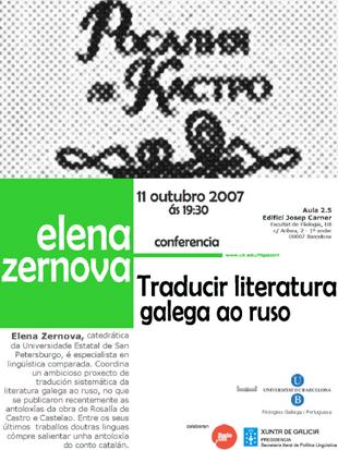 Con este título, Elena Zernova falará nunha conferencia en Barcelona sobre a súa experiencia como tradutora do galego e outras linguas peninsulares.