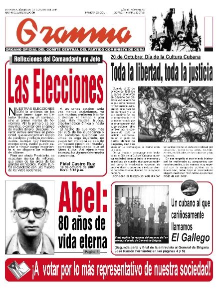 En referencia aos comicios en Cuba, Fidel Castro afirma que "o feito de que vote máis do 90% dos cidadáns, e os escolares custodien as urnas é algo inusitado, non pode ser crido se se trata dun 'escuro recuncho do mundo', agredido e bloqueado, que se chama Cuba". "Así exercitamos os músculos vigorosos da nosa conciencia", conclúe.