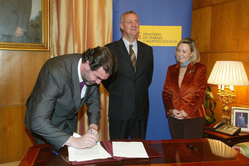 O vicepresidente da Xunta, Anxo Quintana, e o ministro de Traballo e Asuntos Sociais, Jesús Caldera, asinaron na mañá da segunda feira o convenio para facer efectiva a primeira partida dos 60 millóns de euros comprometidos para saldar a débeda histórica con Galiza en materia de servizos sociais.