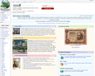 A versión inglesa da enciclopedia colaborativa e até o de agora a máis extensa, con máis de dous millóns de entradas. Atrás dela e por riba da barreira dos 150 mil artigos están as versións en alemán, francés, polaco, xaponés, italiano, neerlandés, portugués, castelán, sueco, ruso, chinés e finlandés. Segundo a súa actividade actual, a Galipedia aparece nun terceiro chanzo da Wikipedia, a das versións que superaron os 25 mil artigos, categoría onde están a turca, árabe ou catalá, esta última, a Viquipedia, xa por riba da barreira das 90 mil entradas.