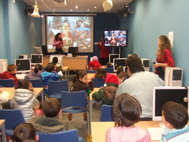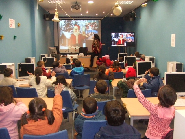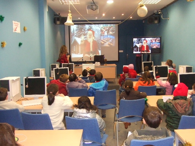 Esta semana os nenos e nenas da vila acudiron ao Telecentro para asistir a un encontro co home groso de vermello, por videoconferencia.