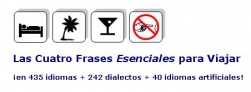 Son catro frases que che poden servir para moverte polo mundo sen que haxa ningún problema: "Onde está o meu cuarto?", "Onde está a praia?", "Onde está o bar?", e a máis estraña, pero segundo o autor da web (un experimentado viaxeiro), a máis necesaria, "Non me toques aí!".