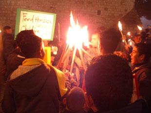 E mentres Gaza sofre as consecuencias das restricións ás que está sometida, en Cisxordania repítense as protestas e xuntanzas en apoio aos seus illados veciños. O martes pola noite, preto de 200 persoas congregábanse, con candeas prendidas, en fronte da Igrexa da Natividade, no centro de Belén, coa intención de pedir a Israel e á comunidade internacional a fin do bloqueo e do castigo colectivo a o millón e medio de habitantes de Gaza.