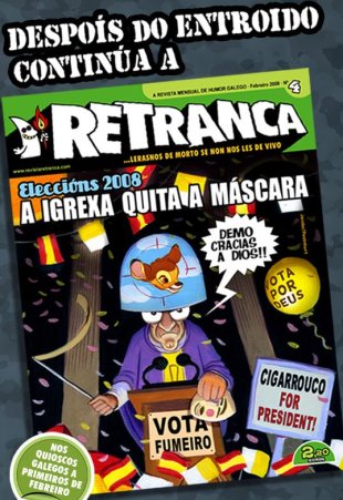 Precisamente cando remata o Entroido, Retranca lanza o seu cuarto número, dedicado ás festas de Don Carnal e á recomendación de voto realizada pola Conferencia Espiscopal hai unhas semana. "A igrexa quita a máscara" encabeza o novo da revista, que foi presentada este venres en Marín no Museo Manuel Torres.