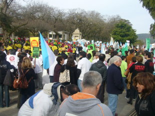 Veciños e colectivos sociais e medioambientais chegados de todo o país conforman unha marcha masiva caracterizada polo ambiente festivo e a música.
