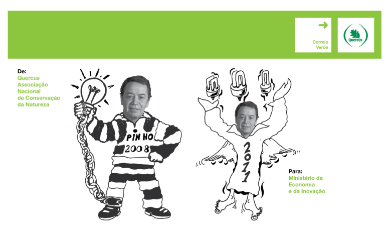 A asociación ecoloxista portuguesa Quercus entregoulle ao Ministério da Economia e Inovação que se prohiban en 2011 as lámpadas incandescentes, que consideran pouco eficientes fronte ás que aforran enerxía. Segundo Francisco Ferreira, vicepresidente de Quercus, "a pesar de que unha lámpada fluorescente compacta ten un custo superior ao das incandescentes, a longo prazo é un investimento que compensa, porque existe unha redución no consumo de electricidade de cerca de 80 por cento e porque ten un tempo de vida dez veces superior".Calcúlase que en Portugal se venden uns 30 millóns de lámpadas. Quercus lembra que xa se marcou a fin das lámpadas incandescentes en países como Irlanda, Reino Unido, Italia e Australia, e que aforrará "1.400 megawatios por ano, ou sexa, o tres por cento do consumo de electricidade, e máis de 680 mil toneladas de redución nas emisións de dióxido de carbono por ano".A asociación asegura que a súa proposta é "unha alternativa máis eficiente ca a taxa ambiental" que se vai aplicar nas lámpadas incandescentes a partir do 1 de marzo, de 41 céntimos por unidade. Con todo, Quercus alerta que as lámpadas economizadoras non se deben botar ao lixo, por conteren mercurio, e se rompen débese abrir a xanela uns 15 minutos, recoller os residuos con luvas de látex e toallas de papel e colocalos nunha bolsa, lavando as mans ao rematar o proceso.Para Francisco Ferreira, trocar as lámpadas incandescentes por fluorescentes aforrará máis electricidade que participar en convocatorias de apagóns de cinco minutos.
