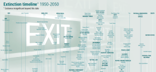 Ross Dawson é o autor da Extinction Timeline (calendario da extinción), que marca as datas de desaparición definitiva de persoas, obxectos e conceptos entre 1950 e 2050. Aínda que facer predicións semella moi atrevido, se se mira atrás pódese comprobar como deixaron de existir realidades que parecían eternas e inamovíbeis: na última década, sen ir máis lonxe, Plutón, o Concorde, as Polaroid ou, segundo o autor, a inocencia.