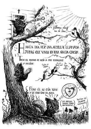 A obra está protagonizada por un esquío católico chamado Judas que procura un lugar no mundo. A historia é relatada con ironía e humor negro, coa presenza de numerosos personaxes secundarias, e en paralelo exprésanse moitos dos temas que interesan ao autor, como as sectas relixiosas, o proceso creativo, a crítica ou o mercado das propostas artísticas minoritarias.