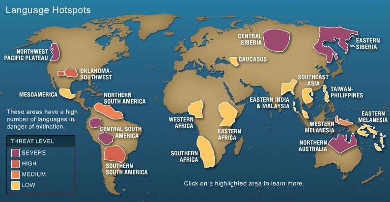 En colaboración con Living Tongues, instituto a prol das linguas en perigo, a publicación National Geographic está a realizar un proxecto de documentación, o Enduring Voices Project, para identificar os lugares do mundo onde a situación é máis crítica.