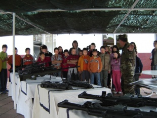 Entre outros os rapaces tamén probaron cascos de visión nocturna, asistiron á explicación de tácticas de camuflaxe ou fixeron descenso en rápel. Pero ademais, e coa escusa de "achegarlles aos veciños a realidade cotiá destas forzas de seguridade", en palabras do rexedor ordense, Manuel Regos, velaí poden ver nas imaxes a pé do texto o dubidosamente didáctico encontro dos cativos con toda unha mostra de armamento.