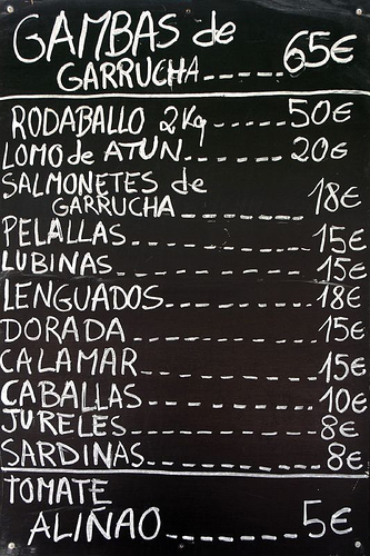 O IPC acadou en maio a súa taxa máis alta dende 1997 / Táboa de prezos nun bar andaluz, do Flickr de cuellar