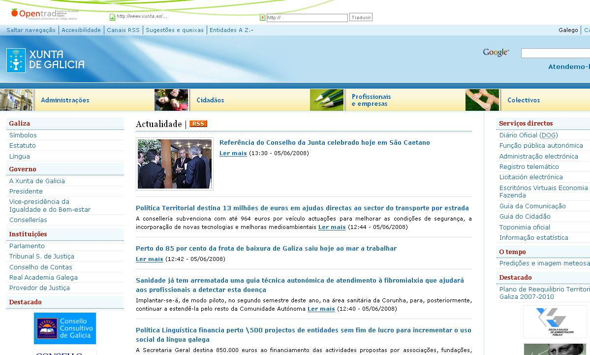 Portugal está aí embaixo, e Brasil está fronte a nós, dobrando o mapa, consolidándose ano a ano como potencia económica global. E os negocios fanse en portugués. Porén, até o de agora non se dispuña de ferramentas que permitisen unha tradución automática, gratuíta e confiábel entre o galego e o portugués. Imaxin Software presentou este xoves o Opentrad galego-español-portugués, desenvolvido coa colaboración do Grupo Talg da Universidade de Vigo e de Paulo Gamallo, da USC.
