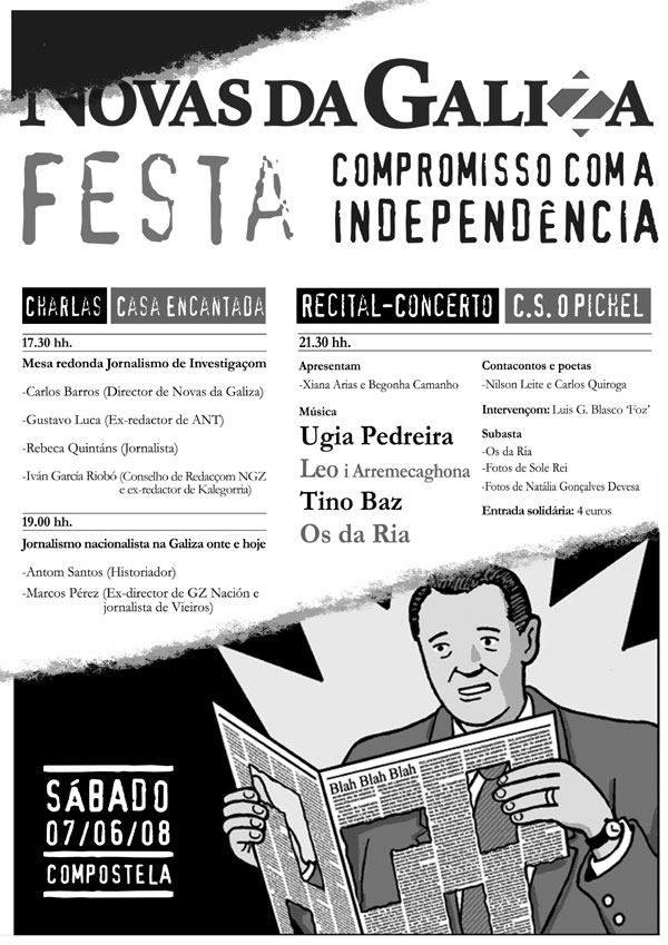 Baixo o lema "Compromiso coa independencia" o mensual soberanista galego, Novas da Galiza organiza unha festa este sábado en Compostela.
