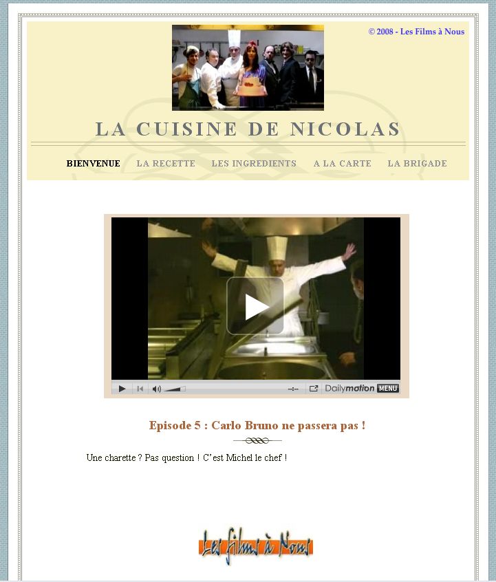 'La cuisine de Nicolas' é unha serie que parodia ao presidente francés, Nicolas Sarkozy, e á súa familia. Emítese cada semana exclusivamente na rede, a través do portal Daily Motion. A acción desenvólvese na cociña do Pazo do Elíseo, onde Sarkorzy e os traballadores viven situacións cómicas.