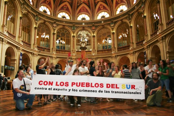O obxectivo era o edificio da Bolsa, e a manobra empregada para ocupalo foi a do despiste. Dende primeira hora da mañá os activistas xuntáronse en diversos puntos de Madrid e, facéndose pasar por turistas, mapa na man, foron achegándose ao predio, na Praza da Lealdade, ao que entraron a correr ao mediodía. Xa dentro, despregaron unhas pancartas nas que se podía ler, entre outras cousas, as frases "Non máis sangue por petróleo" e "Cos pobos do sur".