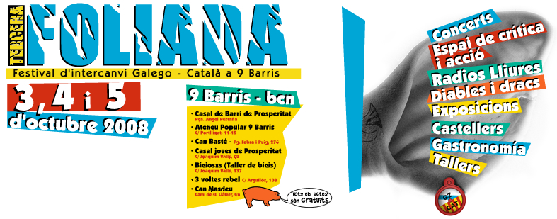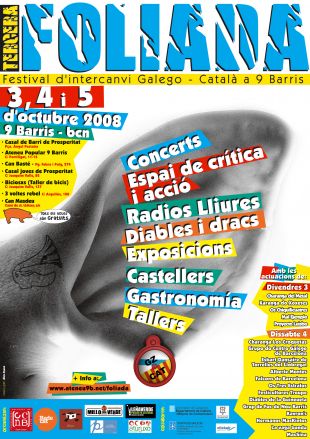 E no 2008, unha outra foliada máis. Empregando o feito cultural como ferramenta de acción social, participación e entendemento, a cuarta edición da Foliada terá lugar desta volta na periferia de Barcelona. Nacho López, o jarbanzo que ideara esta aventura aló por 2003, explica as novidades da IV Foliada.