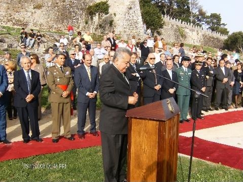 O acto finalizou coa colocación de tres coroas de loureiro no monumento Encontro entre dous mundos, coa interpretación dos himnos galego e español a cargo da banda de música da Escola Naval de Marín e co disparo de dez salvas dende os canóns da fortaleza Conde de Gondomar. Ademais, entregóuselles o Premio Entreculturas, dotado con seis mil euros, ao Centro de Lalín en Bos Aires e ao Concello de Ponteareas, onde tamén goberna o PPdeG.