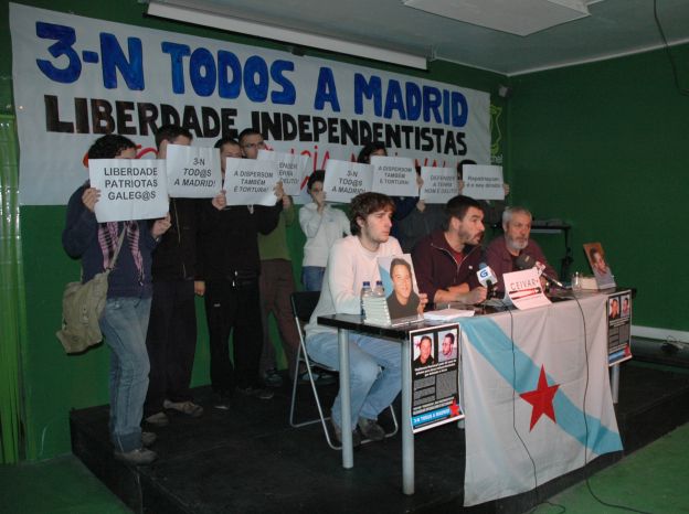 Joám Peres tamén lembrou que na actualidade aínda están abertos diversos sumarios na Audiencia Nacional "que teñen como albo a militantes ou colectivos que traballan na defensa do dereito de autodeterminación de Galiza, e que este tribunal está a empregar como un instrumento para arrebolar" contra o movemento independentista galego. Neste sentido, Peres tamén falou da dispersión penitenciaria que, dixo "implica unha sobre-condena" que tamén sofre a contorna inmediata do preso: familiares, amigos... O representante de Ceivar quixo salientar, a seguir, que as familias dos presos e da presa galegos son os que máis sofren esta situación, "chegando a gastar entre catro e seis mil euros ao mes para poder percorrer 1.100 quilómetros -no caso de Ugio, que se atopa preso en Cádiz-, e facer visitas duns ridículos 45 minutos".