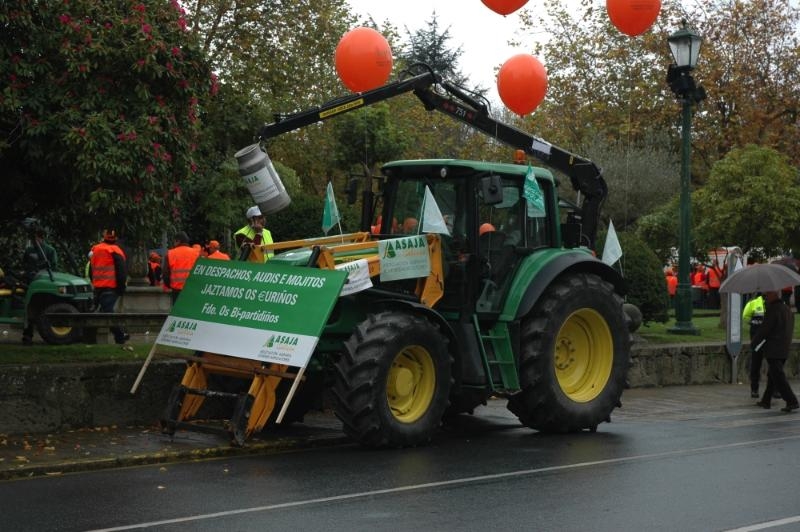 A convocada por XXAA e UUAA saíu da Alameda con atraso respecto á hora prevista, o mediodía, en dirección a San Caetano. Os lemas Prezos xustos, contrato homologado xa ou Ministerio e Consellaría, apoiade á gandaría. O secretario xeral de XXAA, Francisco Bello, criticou a "falta de coordinación" da Policía Local para permitir que chegasen a tempo os buses cos gandeiros.