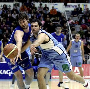 A entrada de Dedas e Fontet endureceu a defensa e fixo máis fluído o ataque, onde destacou especialmente o primeiro. O aleiro grego fixo unha primeira parte impecable, con dezanove puntos e un só erro no tiro, co que os santiagueses deron a volta ao electrónico ata poñerse con 11 puntos de vantaxe. Cando mellor estaban os locais e cun León que parecía non ter capacidade de reacción chegouse ao descanso, cun marcador de 46-35.