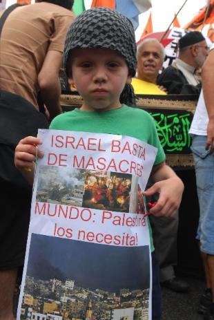O martes, na cidade de Bos Aires, entidades árabes xunto á Federación Argentino-Palestina, a Asociación Nais da Praza de Maio, federación Universitaria de Bos Aires, e forzas políticas camiñaron ata o Obelisco para esixir que rematen os ataques na Franxa de Gaza.