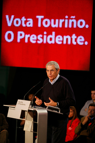 É por iso que a estratexia socialista non arrisca, senón que mide os tempos. Xa dende hai semanas estamos vendo os carteis que presentan non ao 'Candidato Touriño', senón ao 'Presidente Touriño', nun intento de capitalizar electoralmente o feito de ocupar o mando da Xunta. Nun intento, así mesmo, de presentar a Touriño como o garante da orde, do diálogo, da serenidade, das posicións centradas, 'o presidente de todos e contra ninguén', din os carteis. "Serenidade", repetiu Touriño en varias ocasións, ao tempo que acusaba ao PP crispar a política e de dividir a sociedade galega. Foi o PP o albo de todas as críticas socialistas, nun discurso que en ningún momento fixo referencia ao BNG. Lealdade co seu socio de goberno ou un intento de polarizar a campaña entre os dous principais partidos?