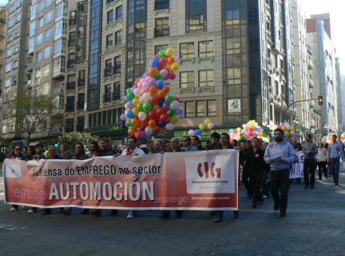 Este mércores a CIG organizou unha protesta na que participaron sobre 300 delegados do metal, das químicas e do téxtil; tres eidos integrados no sector da construción de automóbiles. A mobilización consistiu nunha marcha que foi dende o local da central sindical até un céntrico cruzamento de rúas onde teñen as súas sedes catro dos bancos máis importantes que operan na cidade.