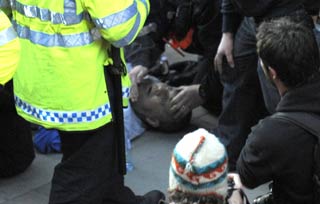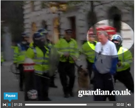 O diario británico The Guardian pendurou na rede un vídeo no que se aprecia como a policía bate no manifestante Ian Tomlinson, quen momentos despois caeu ao chan e faleceu, por causa dun ataque cardíaco.