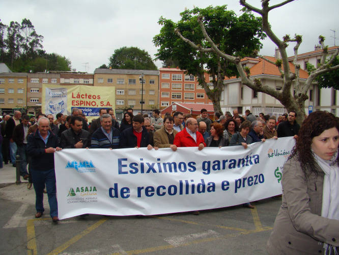 Milleiros de gandeiros do país e profesionais vinculados ao sector -os sindicatos din que entre 20 e 40 mil-, reclamaron "medidas de choque inmediatas" para solucionar a crise do leite, porque de non se desenvolver, sinalaron, perderán "todo o que teñen". Convocados polos sindicatos Unións Agrarias (UUAA), Xóvenes Agricultores (XXAA), e o Sindicato Labrego Galego (SLG) e a Asociación Galega de Cooperativas Agrarias (Agaca), denunciaron a "pasividade" das Administracións ante os problemas intrínsecos ao sector do leite no país, e convidaron os mandatarios a "repensar a política agraria", ante os constantes problemas endémicos que sofren.