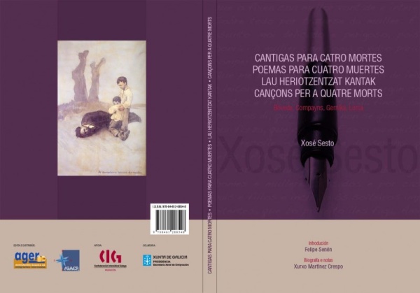 A pasada semana presentouse na galería Sargadelos de Pontevedra o libro de Xosé Sesto Cantigas para catro mortos, editado pola CIG Migración e a Federación Galega de Asociacións de Emigrantes. O libro foi escrito por Sesto a comezos dos anos 90 e consta de catro poemas adicados cada un deles ás nacións que mutilou a guerra do ano 36. Para ilustrar ese sufrimento utiliza figuras reivindicativas de cada un destes pobos como son Alexandre Bóveda, Lluis Compayns, a vila de Gernika ou Federico García Lorca.