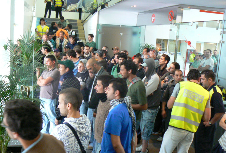 Os operarios do metal, a primeira hora da mañá desta quinta feira, ocupando a Estación Marítima de Vigo / Imaxe: Zélia Garcia
