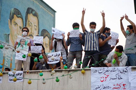 Cinco días despois das eleccións presidenciais en Irán, continúan as protestas nas rúas, desenvolvidas por milleiros de opositores ao réxime de Ahmadinejad, seguidores de Mousavi, que seguen a denunciar a fraude electoral. Durante as protestas faleceron, polo menos, sete persoas.
