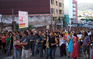 Varios centos de persoas, máis de mil segundo a organización, manifestáronse dende a Alameda Vella de Cangas até a zona do Salgueirón, onde se levan a cabo as obras de construción do complexo turístico, onde insistiron na ilegalidade do proxecto e lembraron os danos que levarán consigo as instalacións.