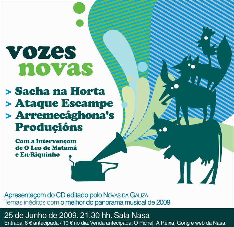 O xornal Novas da Galiza e máis o colectivo Komunikando xuntaron as súas forzas para editar un cedé cos "berros frescos e directos" do novo panorama musical galego. Para crear este disco xuntaron 19 grupos do país, dos que 15 aportaron temas inéditos que conforman Vozes Novas.
