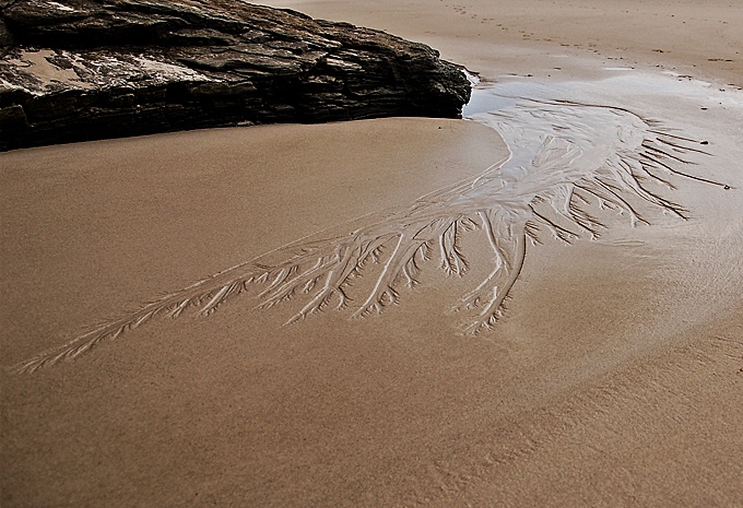 A ampliación do prazo de entrega de traballos en Unha imaxe para o galego até o día 10 de xullo permite que sigan chegando novas imaxes e vídeos á redacción de Vieiros. Un exemplo témolo nesa imaxe que leva por título Raíces da terra, e está firmada por Neus Manteiga. A autora desta imaxe usa os camiños que a auga debuxa na area da praia para simbolizar as raíces que a nosa cultura mira de espallar pola terra en que vivimos, e que teñen como principal alimento a lingua.