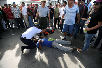 Após unha xuntanza de pouco máis dunha hora, Zelaya comparecía ante os medios xunto ao presidente salvadoreño, Mauricio Funes, acusando de criminais os dirixentes do Goberno 'de facto', aos que responsabilizou da morte de Murillo. "Unha marcha pacífica foi reprimida a balazos, quitáronlle a vida a un compatriota", indicou Zelaya durante a conferencia de prensa. "É un acto criminal que non pode quedar impune. Os criminais non poden dirixir un país", acrecentou. Ademais, fixo un novo chamamento aos soldados para que, "en nome de Deus, baixen as armas contra o pobo e non repriman máis os hondureños".