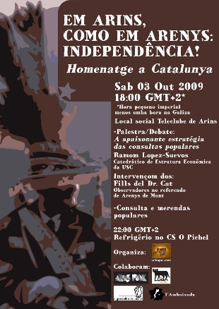 Posteriormente, chegados dos Països Catalans, intervirán os Fills del Dr. Cat, unha outra plataforma anticolonial xa veterana, que ademais participou como observadora no referendo de Arenys de Munt.