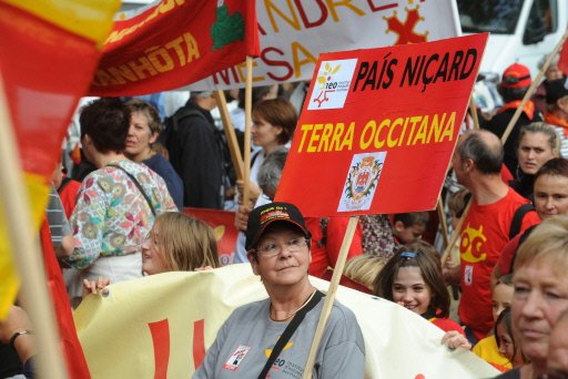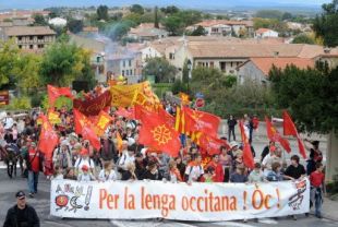 Milleiros de persoas -20 mil segundo a organización, 14 mil segundo a policía- marcharon este sábado á tarde polas rúas de Carcassona para reivindicar que o Estado francés se implique na defensa da lingua occitana, na súa promoción no ensino e nos medios de comunicación.