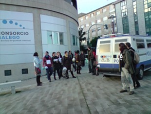 A Xunta mobilizou a varios axentes de policía para impedir o peche que tiñan previsto levar a cabo os traballadores das oficinas de Igualdade e Benestar na sede central do Consorcio (Compostela). As forzas de seguridade negáronlle a entrada nas dependencias públicas ao persoal das oficinas comarcais que se desprazaran até Compostela para participar na mobilización.