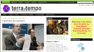 A web estruturase en cinco seccións (Galiza, Lingua e Cultura, Economía e Traballo, Sociedade e Internacional). Entre as reflexións que aparecen en portada nestes primeiros pasos da publicación na rede están o artigo 'O goberno dos ausentes', de Pablo Carracedo, onde se avalía criticamente o labor da Consellaría de Educación e 'Feijoo09-Galiza 0', de Martiño Santos, que analiza a traxectoria da Xunta neste primeiro aniversario da vitoria do PP nas urnas.