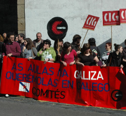 Mentres se desenvolvía o debate no interior do Consello, máis dun cento de persoas, convocadas pola Plataforma Queremos Galego, manifestáronse para amosar o seu rexeitamento ao borrador. Entre consignas como "En Galiza, en galego" e "Pola nosa lingua, ningún paso atrás", defenderon o "dereito básico a recibir o ensino na nosa lingua" (ver vídeo). Carlos Callón, presidente da Mesa pola Normalización e membro de Queremos Galego, adiantou a Vieiros que "imos convocar todas as manifestacións que fagan falta".