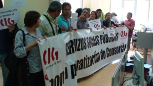 En protesta pola situación, as delegadas e delegados do Consorcio pecháronse durante a mañá desta cuarta feira deica as 13horas, momento no que foron desaloxados pola policía, requirida a súa presencia polo xerente do organismo.