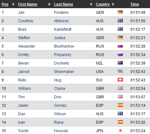 Os australianos Courtney Atkinson e Brad Kahlefeldt, foron segundo e terceiro, respectivamente. O ruso Alexander Brukhankov convértese en novo líder da clasificación xeral.