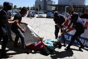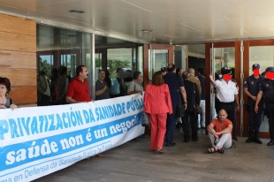 Representantes das plataformas laiáronse do despregue de "propaganda institucional" da Consellaría de Sanidade, criticando que a presentación desta suposta estratexia coincide cun feixe de novas na liña dunha "deterioración e privatización do sistema sanitario en Galiza". Malia o carácter pacífico da concentración cidadá, a policía recibiu orde retirar os cartaces á entrada dos altos cargos da Xunta causando momentos de tensión cos manifestantes. As plataformas censuran por isto a "violencia gratuíta despregada polas forzas do orde contra unha concentración pacífica".