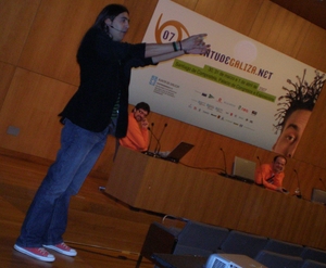 Afondamos na Iniciativa Galega polo Software Libre, Mancomun.org; “Alta definición 10980 líneas”, por Carles Agea; “O desenvolvemento de xogos con Direct/Xna”, por Miguel Ángel Ramos Barroso, de Microsoft Ibérica; a última novidade de BluSens, presentada polo seu director de marketing, Miguel Churruca; “Emprego nas TIC. O modelo Coremain”, a cargo de Ana Álvarez Ramos Barroso, na foto de arriba.